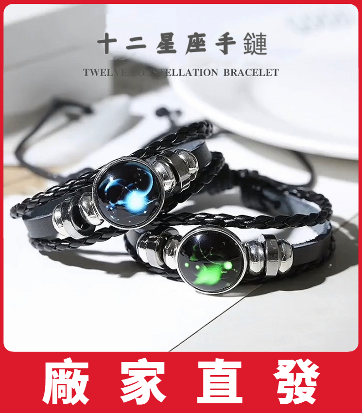 12分鐘前夜光手鍊十二星座皮繩手串學生潮人情侶飾品首飾女韓版時尚帥氣 - 【夜光手鍊十二星座 三入组】